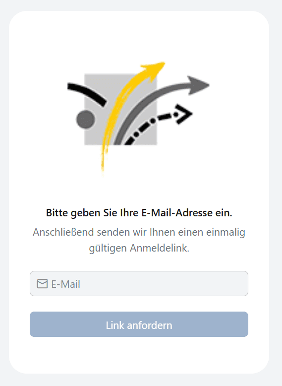 Beim Aufruf der Seite muss ein Anmeldelink per E-Mail angefordert werden, um sich direkt über den Browser im Chat anzumelden.