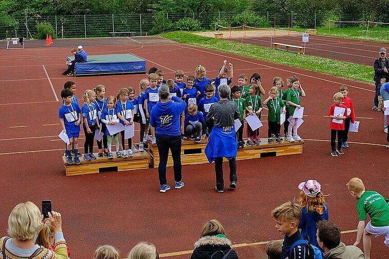 Für die 11 kleinen Geparden war ein 3-Kampf zu absolvieren (30m-Hindernis-Sprint-Staffel, Zielweitsprung, Drehwurf mit dem Tennisring), für die beiden U10-Mannschaften stand ein 4-Kampf bestehend aus 40m-Hindernis-Sprint-Staffel, Biathlon-Staffel, Weitsprung in die Zone und Drehwurf mit dem Fahrradreifen auf dem Programm.
